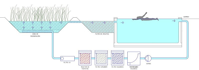 Sistema de depuración que emula lo natural para conservar la calidad del agua en lugar de recurrir a químicos, el mantenimiento no demanda productos químicos, ya que se basa en la recirculación del agua de manera constante por cámaras de filtrado.